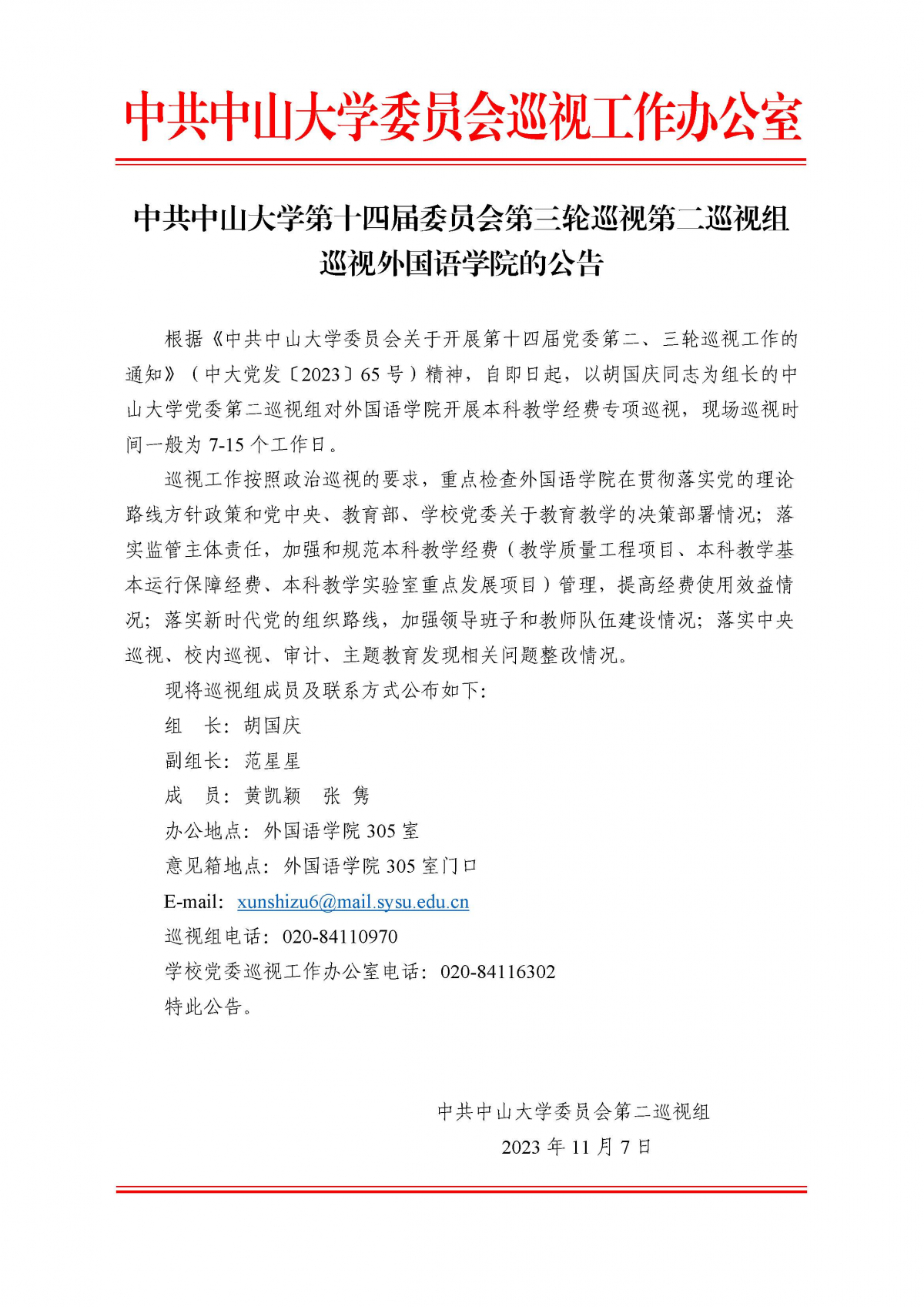 导航痕迹 在线博彩 人才培养 本科生教育 中共在线博彩 第十四届委员会第三轮巡视第二巡视组 巡视在线博彩 的公告 中共在线博彩 第十四届委员会第三轮巡视第二巡视组 巡视在线博彩 的公告 发布日期:2023-11-07 扫描此二维码分享