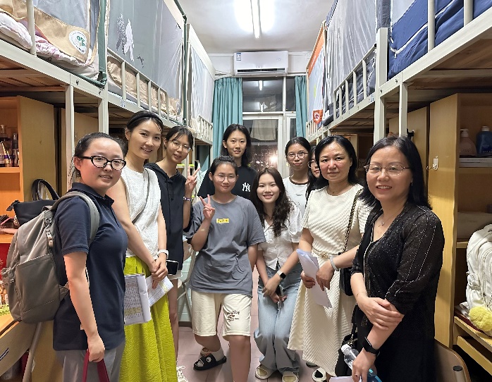在线博彩 的各位领导们和辅导员走访了新生宿舍,与同学们进行了亲切愉快的交流。老师们亲切询问了新生们对大学生活的适应情况,向他们初步介绍专业情况,并鼓励他们遇到问题可以向学院老师和学长学姐们请教。同学们表示感受到了外院大家庭的无微不至的温暖与关怀,对即将到来的学习与生活充满好奇和期盼。