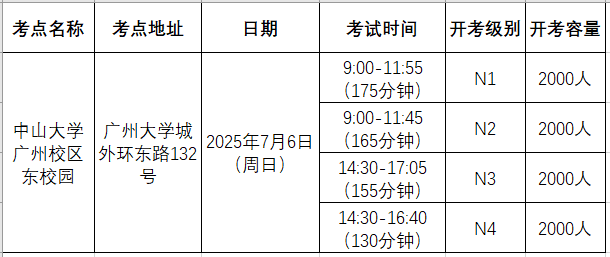 2025年7月6日日本语能力测试在线博彩 考点公告